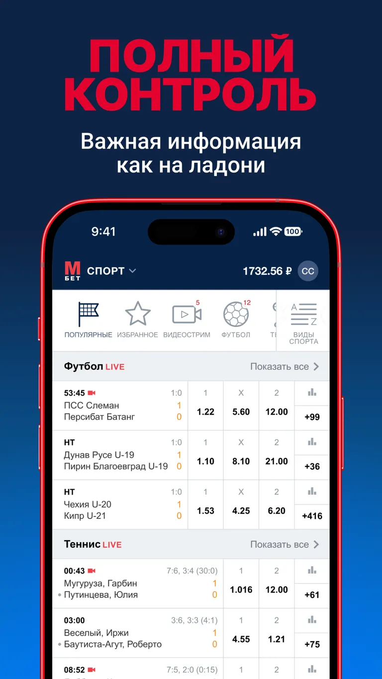 - Совершение всех доступных видов ставок на прематчи и лайвы.